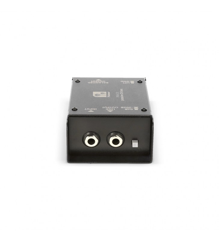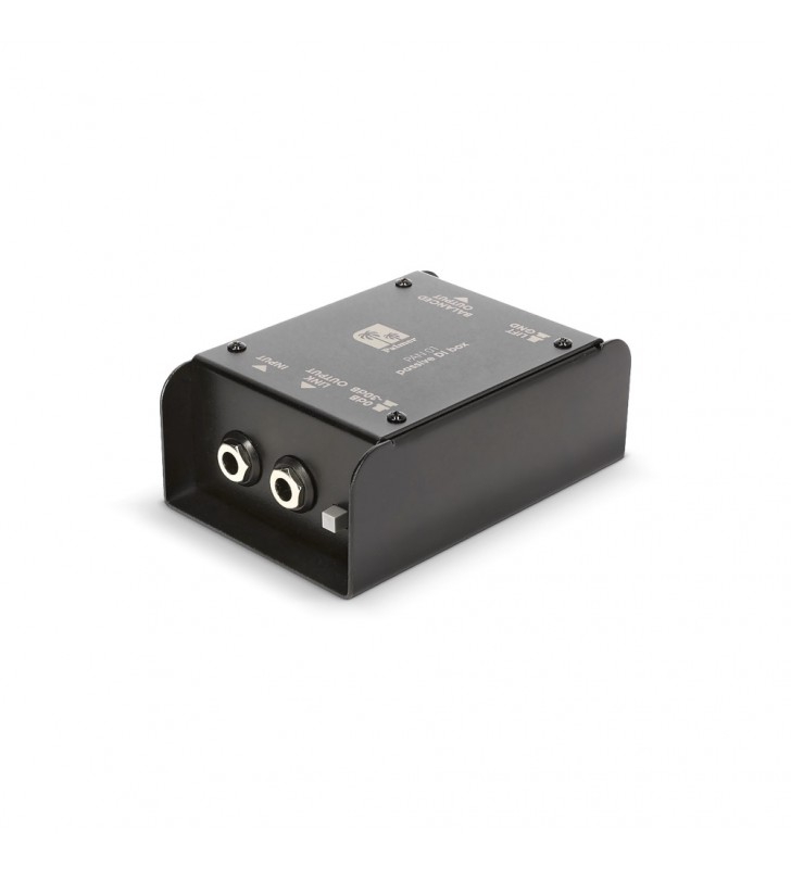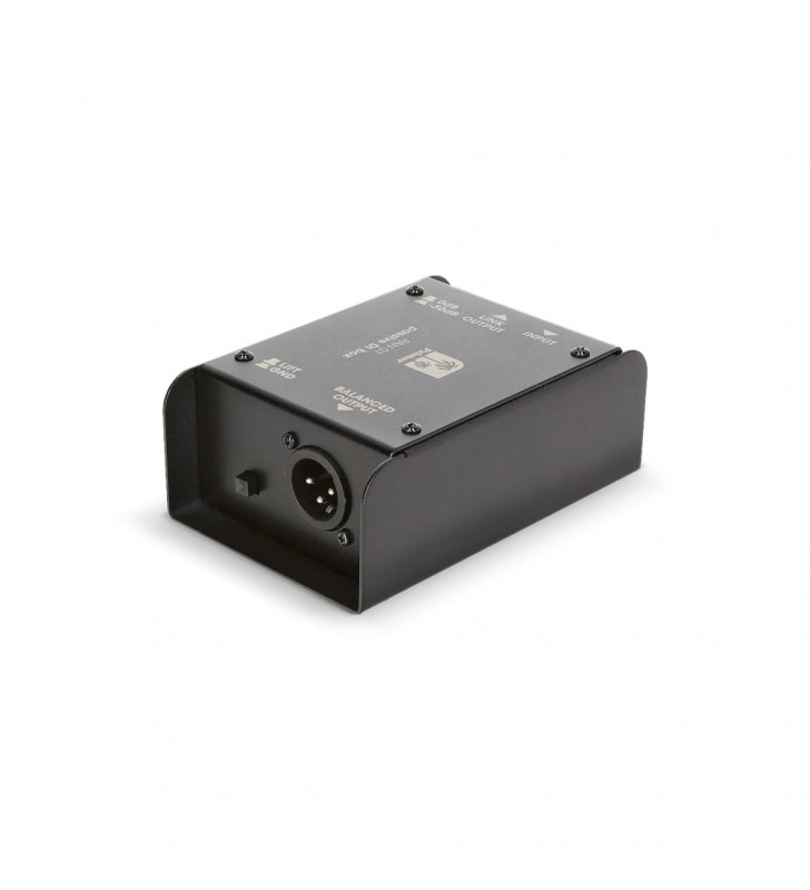 Passieve DI-box. Jack-ingang met parallelle "THRU"-uitgang, transformatorgebalanceerde XLR-uitgang. Verzwakbare ingangsgevoeligheid, kan zowel lijnniveau- als luidsprekerniveausignalen verwerken.
