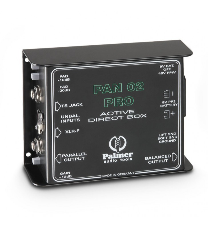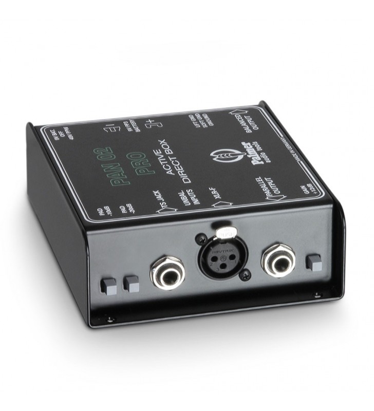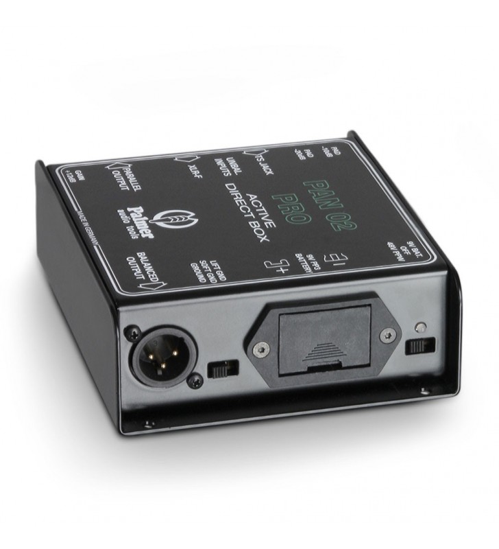 Passieve DI-box. Jack-ingang met parallelle "THRU"-uitgang, transformatorgebalanceerde XLR-uitgang. Verzwakbare ingangsgevoeligheid, kan zowel lijnniveau- als luidsprekerniveausignalen verwerken.