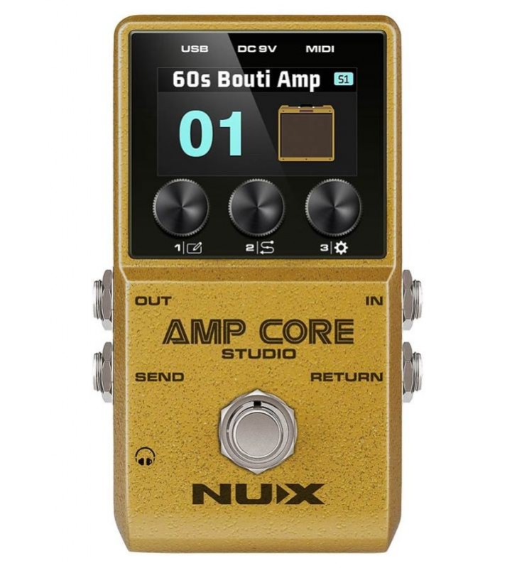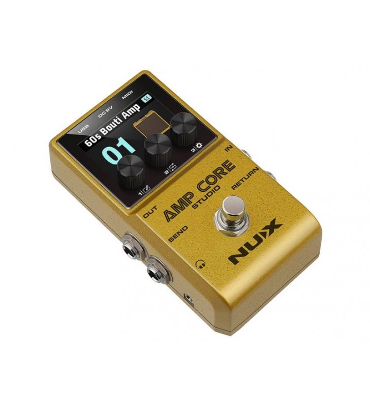 De NUX AMP CORE STUDIO maakt gebruik van het geavanceerde TSAC-HD-algoritme (White-box Amp Modeling) van NUX en bevat maar liefst 26 legendarische versterkermodellen. Het levert het authentieke geluid en gevoel van wereldklasse buizenversterkers in een uiterst draagbaar pedaalformaat. Dankzij de enorme headroom en dynamisch bereik is het een ideale basis voor gebruik met andere pedalen. Ondanks zijn ultracompacte formaat kan de AMP CORE STUDIO tot 20 hyperrealistische versterkerpresets opslaan, inclusief ingebouwde IR-cabinet simulaties of 3rd-party IR-bestanden. Met 3 Scene Modes schakel je in real-time moeiteloos tussen verschillende versterkergeluiden – perfect voor livegebruik én studio-opnames.