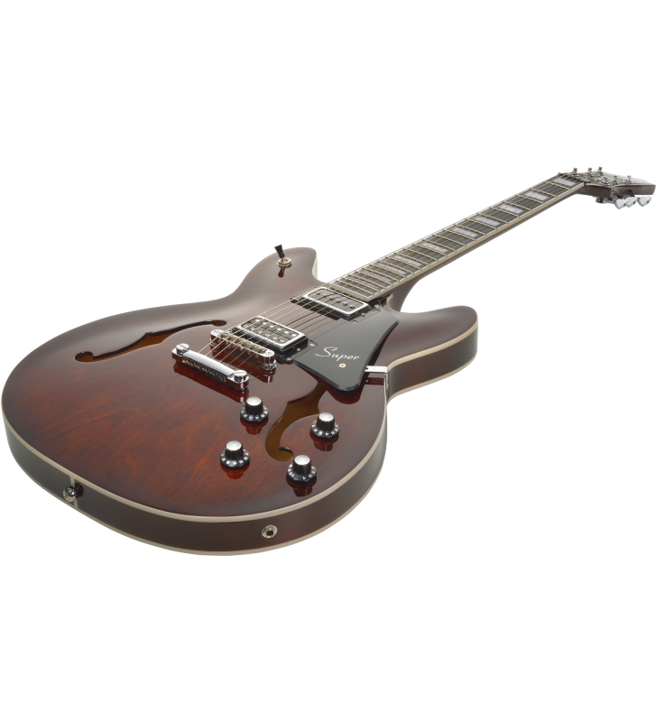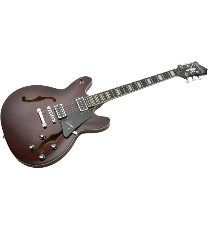 De Super Viking in Transparent Brown-afwerking werd met een speciale pickupcombinatie helemaal op maat gemaakt voor Justin York (de “touring guitarist” van Paramore en tevens broer van oprichter Taylor York).