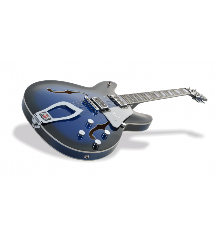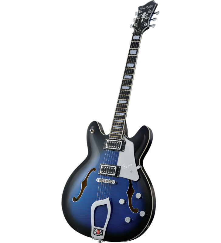 De veelzijdige klankmogelijkheden, de uitmuntende bespeelbaarheid en een prachtige look hebben ervoor gezorgd dat de Hagstrom Viking® deel uitmaakt van het selecte groepje razend populaire semi-akoestische gitaren. De Super Viking zet deze traditie op een briljante manier voort, met alle fantastische kenmerken van de Super Swede – een première voor de Viking-serie. Het belangrijkste kenmerk is waarschijnlijk de schaal van 648mm/25,5”. Drop-stemmingen, die helder en dynamisch blijven klinken, vormen een thuiswedstrijd voor de Super Viking. Dankzij een krachtige basis krijgt iedereen zin om deze alternatieve muzikale aanpak op z’n minst eens te verkennen. De tonale bandbreedte van de Super Viking is voor een groot deel te danken aan de speciaal voor dit model ontwikkelde halfopen H-50C humbuckers. Met de toonregelaars kunnen ze worden gesplit voor een singlecoil-sound, wat een belangrijke verruiming van je muzikale woordenschat betekent. De Super Viking-body van gewaterd esdoorn wordt met uitgekiende afwerkingen nog extra in de verf gezet.
