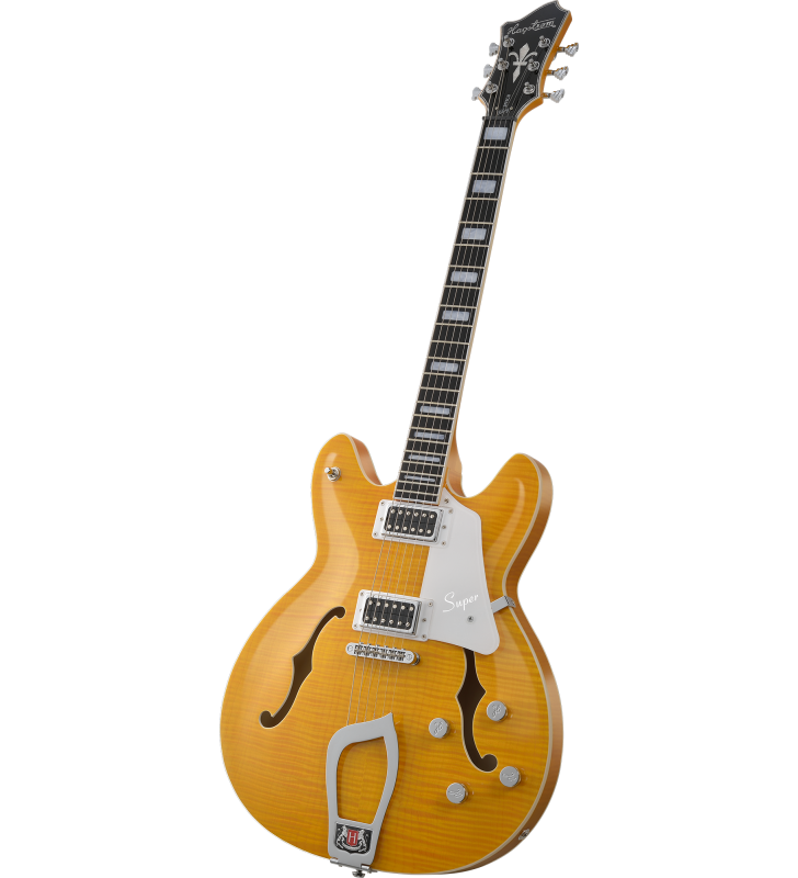 De veelzijdige klankmogelijkheden, de uitmuntende bespeelbaarheid en een prachtige look hebben ervoor gezorgd dat de Hagstrom Viking® deel uitmaakt van het selecte groepje razend populaire semi-akoestische gitaren. De Super Viking zet deze traditie op een briljante manier voort, met alle fantastische kenmerken van de Super Swede – een première voor de Viking-serie. Het belangrijkste kenmerk is waarschijnlijk de schaal van 648mm/25,5”. (Fender mensuur)