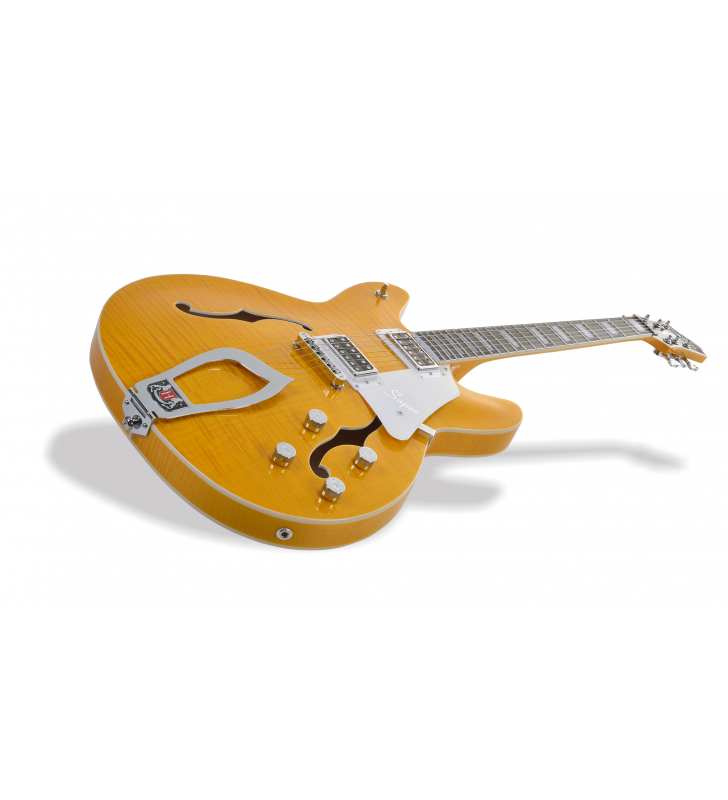 De single cutaway hollow body levert een warm, resonerend geluid dat zeer geschikt is voor blues, country, rock en jazz.
