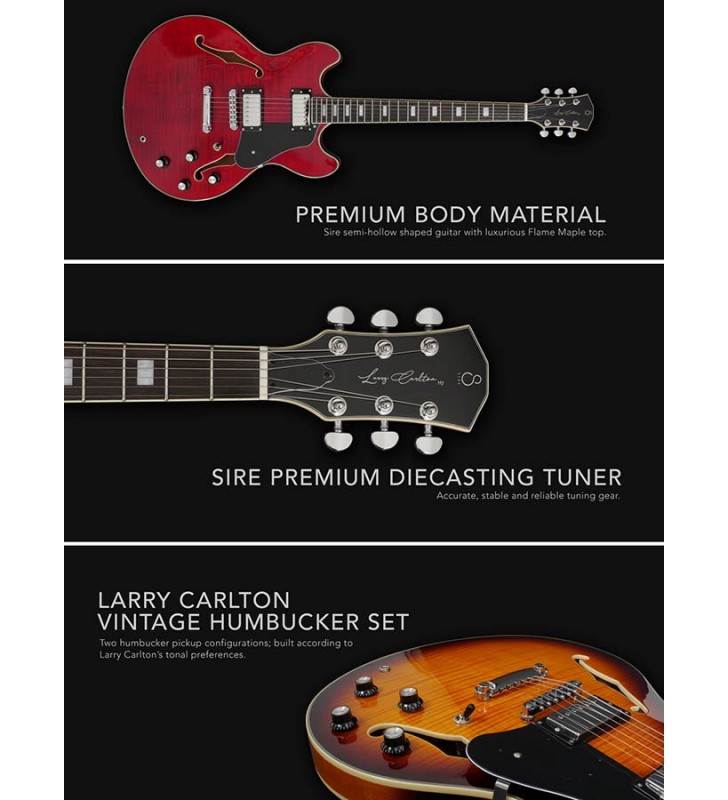 Larry Carlton en SIRE werken al geruime tijd samen aan de ontwikkeling van “de” perfecte elektrische gitaar. Larry Carlton's uitgebreide knowhow als speler, gecombineerd met de vaardigheden die SIRE heeft verworven door en tijdens de ontwikkeling van de Marcus Miller Signature Bass Guitars, heeft geresulteerd in Larry Carlton's Signature Electric Guitar Model.