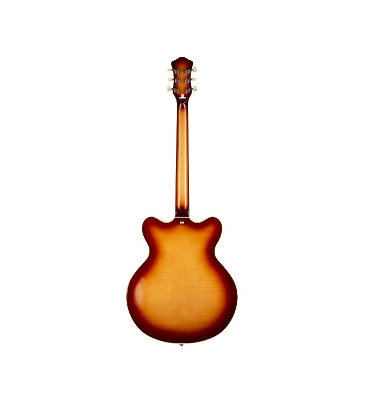 De single cutaway hollow body levert een warm, resonerend geluid dat zeer geschikt is voor blues, country, rock en jazz.