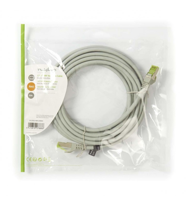 Cat 7 S/FTP PiMF-Netwerkkabel - RJ45 Male - RJ45 Male - 5,0 m - Grijs