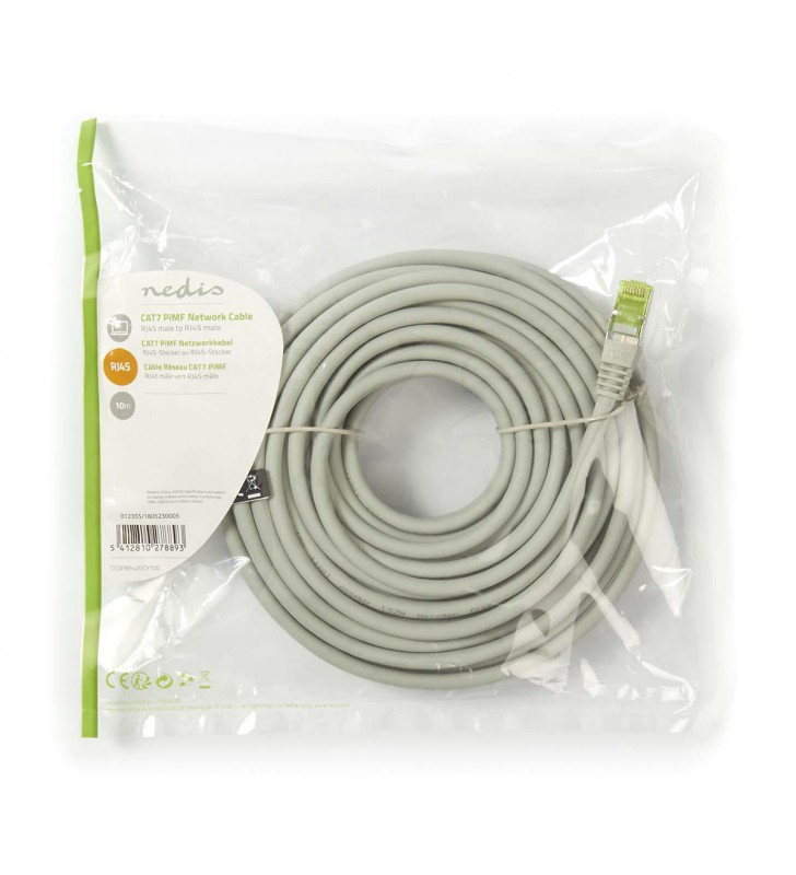 Cat 7 S/FTP PiMF-Netwerkkabel, RJ45 Male - RJ45 Male, 10 m, Grijs