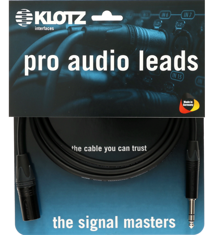 Klotz M1MS1B gebalanceerde microfoon/signaal kabel met XLR Male en rechte jack.