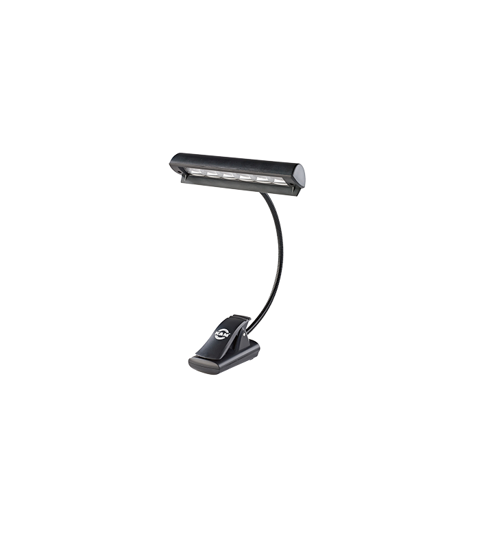 De lichtkegel is beperkt tot de muzieknoot door middel van een anti-reflectiescherm en kan naar eigen behoefte worden gepositioneerd met behulp van de flexibele zwanenhals.