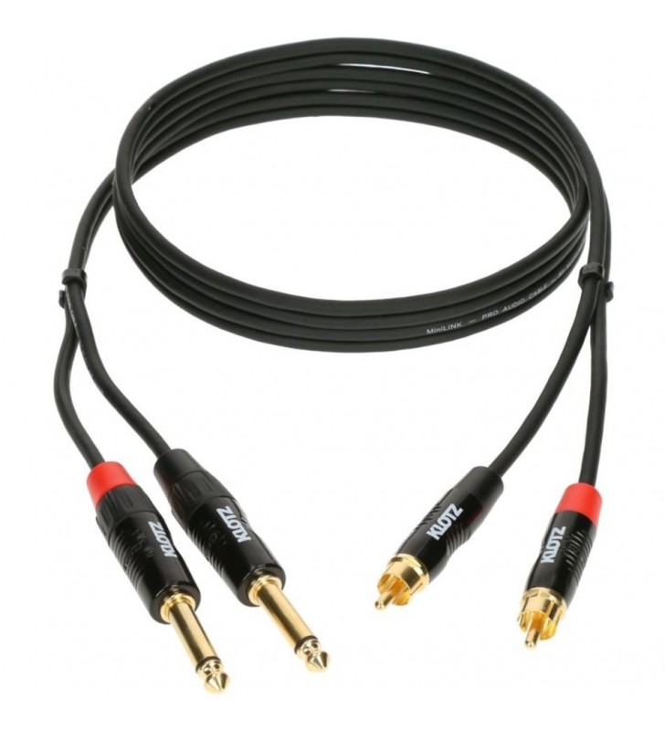 Klotz KT-CJ MiniLINK PRO Stereo Kabel met metalen RCA- en mono jack-pluggen 6.35mm, verguld