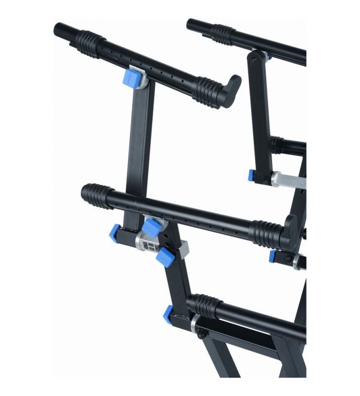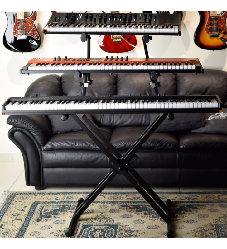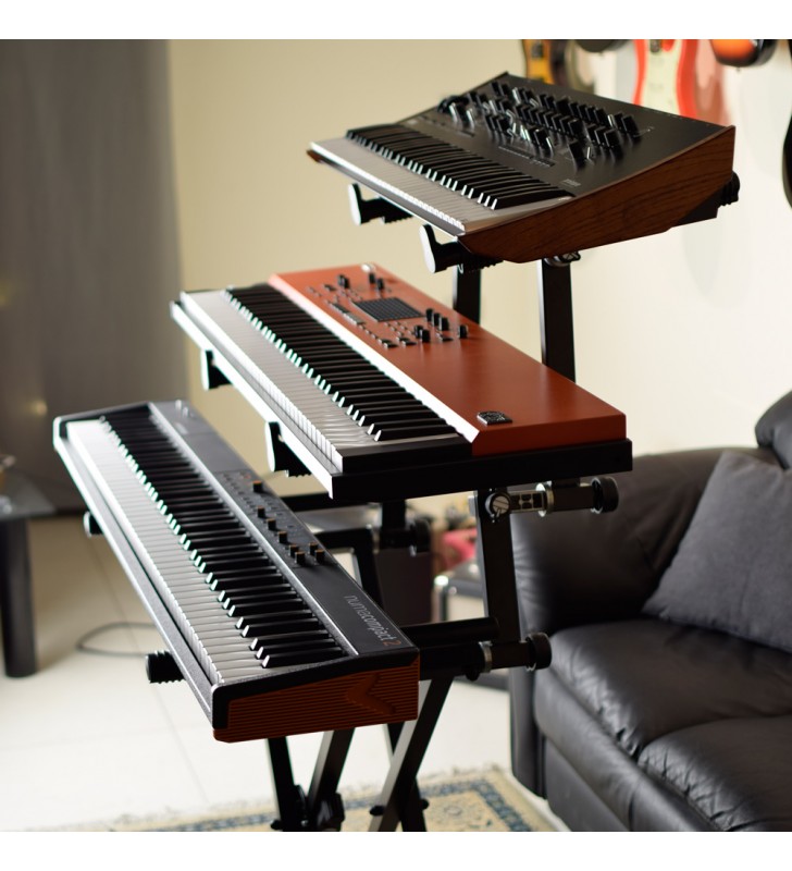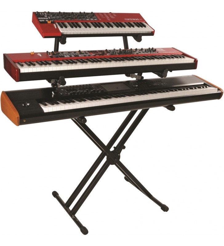 Het heeft een totaal draagvermogen van 90 kg en elk van de twee sets op de bovenste laag is geschikt voor toetsenborden met een gewicht tot 27 kg.