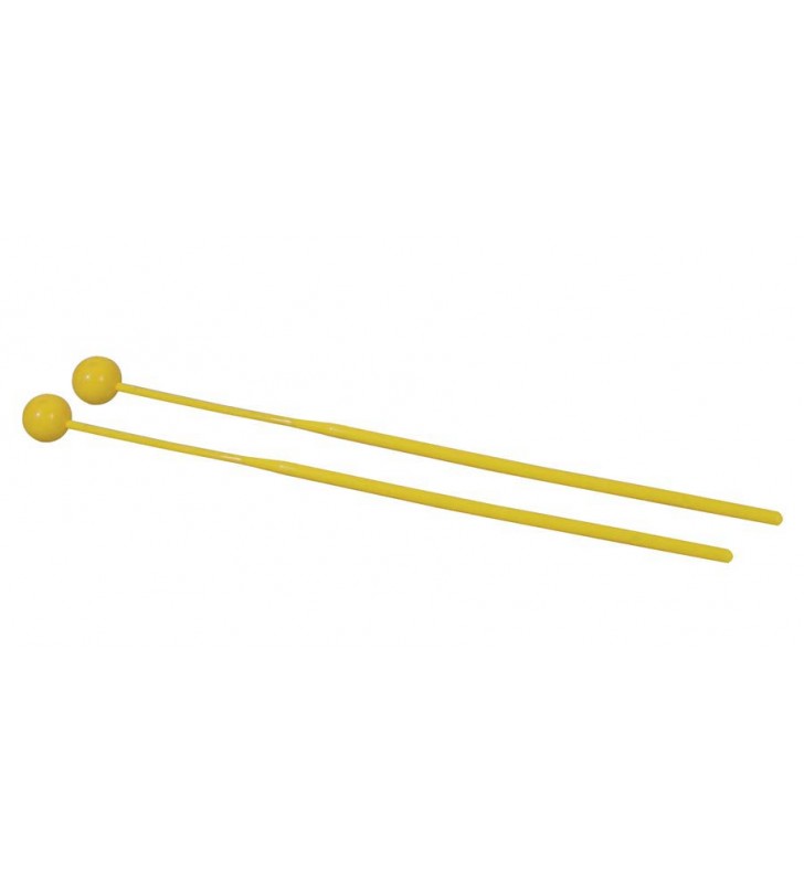 Kloppers, paar, kegelvormige kunststof schacht, 305 x 7 mm, 21 mm bol, hard geel kunststof