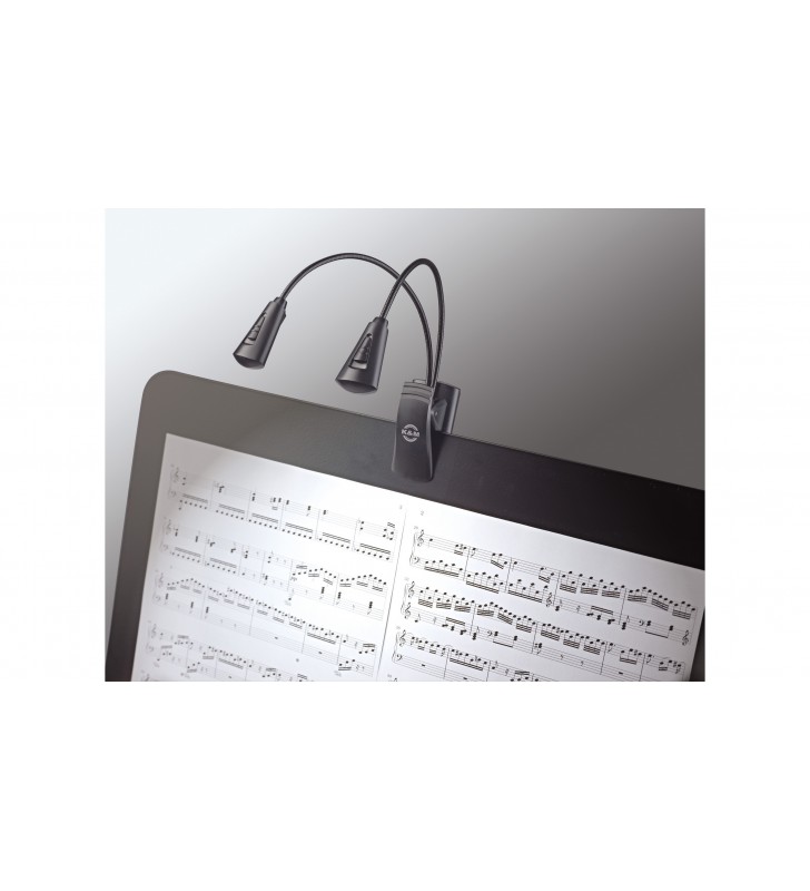 De praktische en extra brede clip (tot 25 mm) kan worden bevestigd aan muziekbureaus, tafelbladen etc.