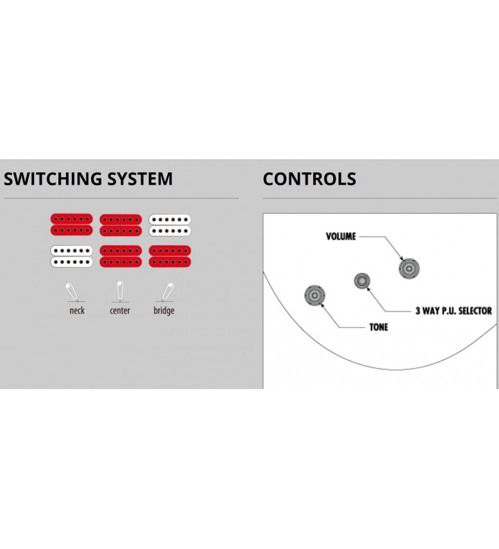 De snaren zijn verankerd door een ART-ST Tune-O-Matic brug en VT06 trapeze staartstuk.