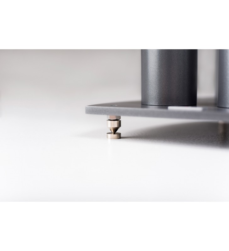 De standaard staat op verstelbare 8 mm stalen spikes, die ongewenste trillingen helpen verminderen.