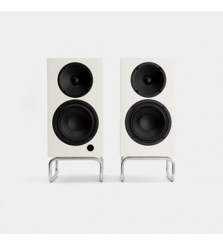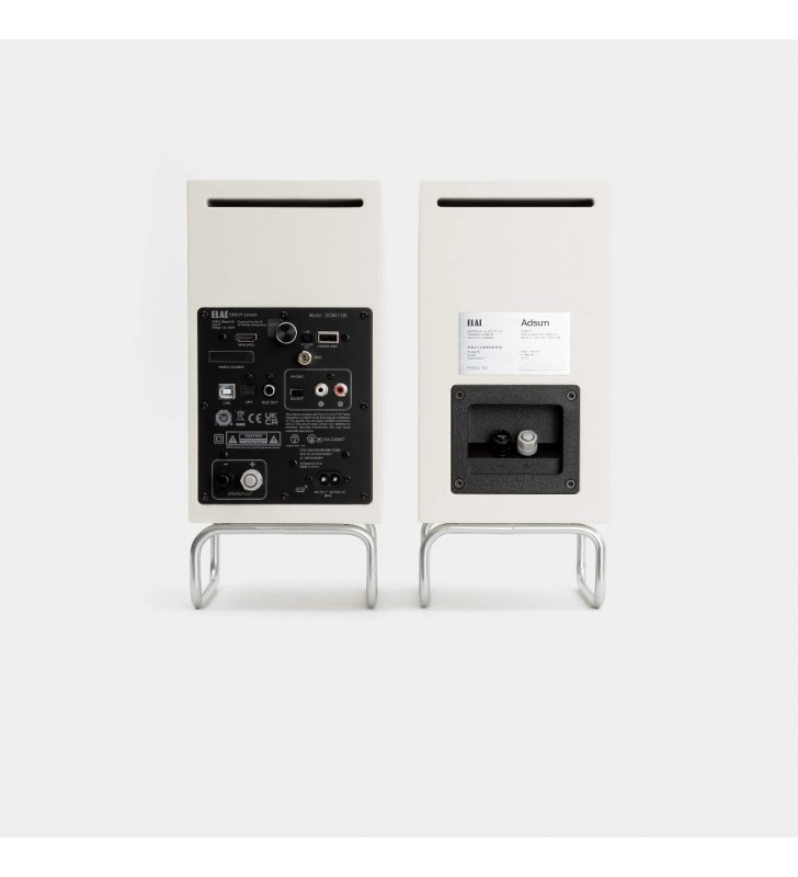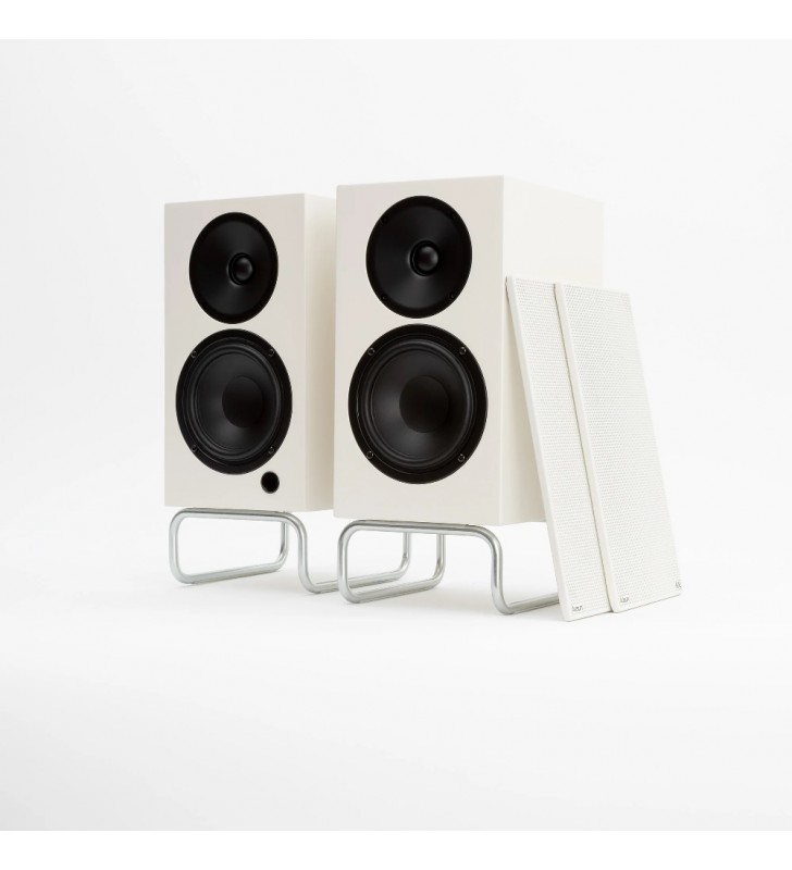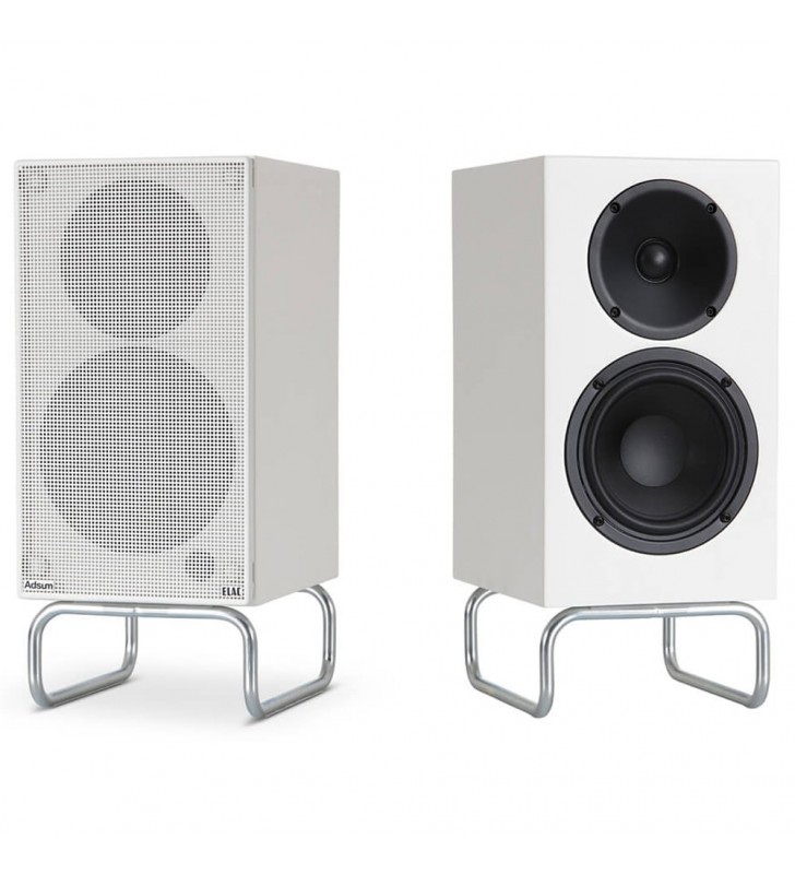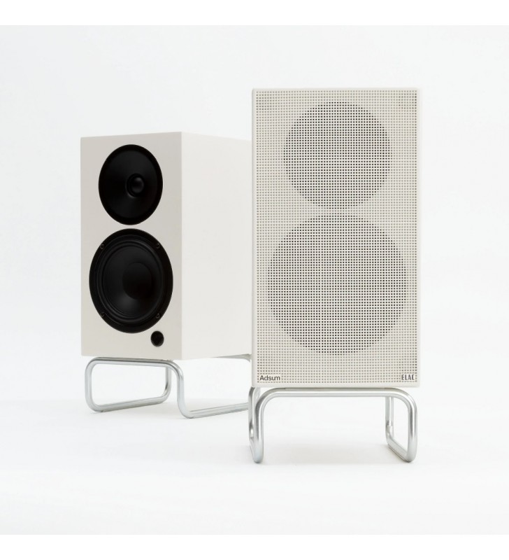De Elac DCB41-Adsum onderscheidt zicht met een volledig in satijn wit gelakte behuizing, magnetisch front en een standaard ten opzichte van de standaardversie.