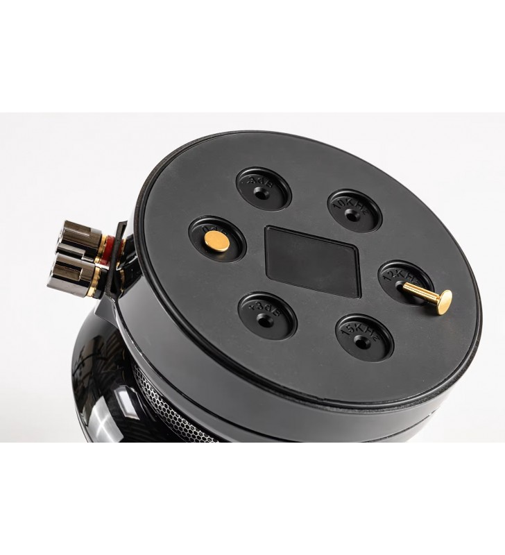 Aan de onderzijde van de voet kan doormiddel van insteekpluggen de overgangsfrequentie naar wens worden ingesteld op 10.000, 12.000 of 15.000Hz.
