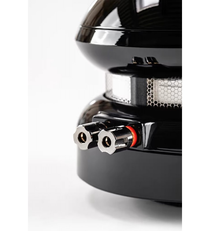 De resonantievrije behuizing is gemaakt van gegoten aluminium en is afgewerkt in een chique zwarte hoogglanslak.