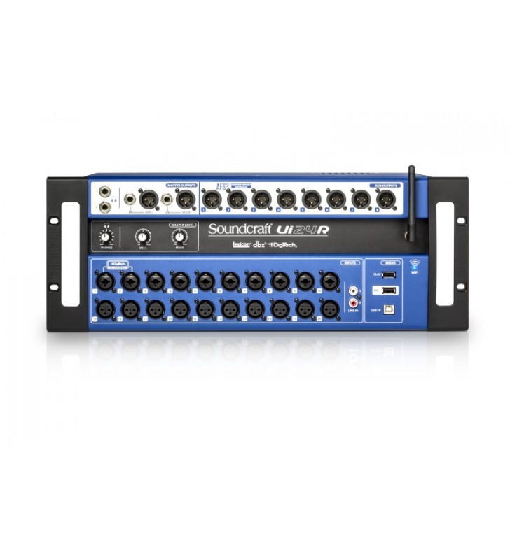 De Soundcraft Ui24R is een compleet, in een rek te monteren, digitaal mix- en multi-track opnamesysteem dat flexibele I/O, onberispelijke geluidskwaliteit, intuïtieve draadloze bediening en rijklare betrouwbaarheid levert - alles in een gestroomlijnd ontwerp.