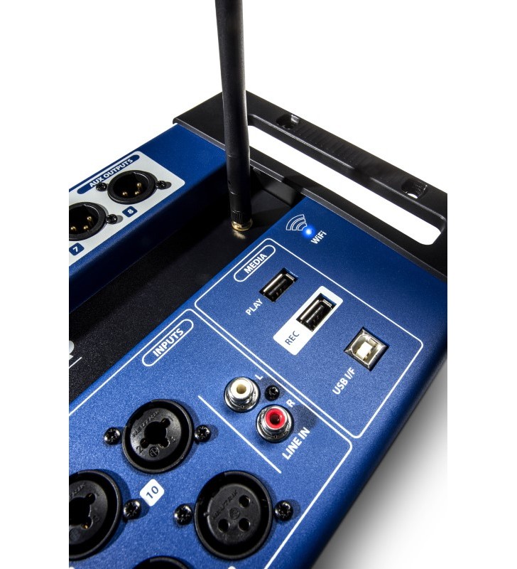 Het systeem kan ook dienst doen als stagebox en kan worden bestuurd door maximaal 10 apparaten via Ethernet of ingebouwde dual-band Wi-Fi, waardoor het mogelijk wordt om het mixen en multi-track opnemen draadloos te regelen vanaf elke plek in de zaal.