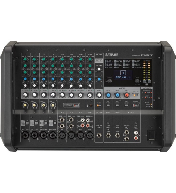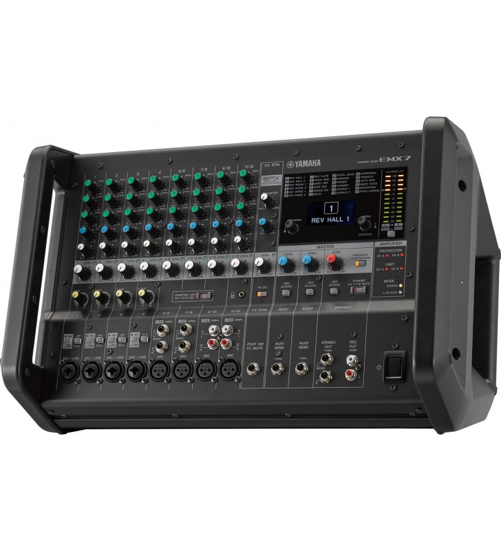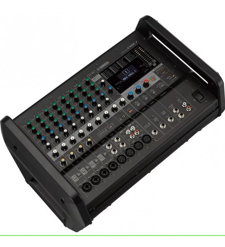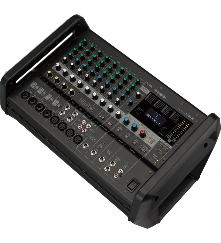 Robuuste en draagbare mixer met een hoogrendementsversterker van 710 W en een mixer met uitgebreide effecten, Flex 9 grafische equalizer, luidsprekerpreset en ingebouwde feedbackonderdrukker.