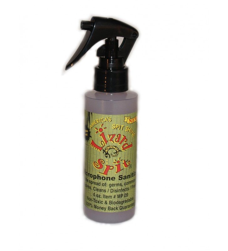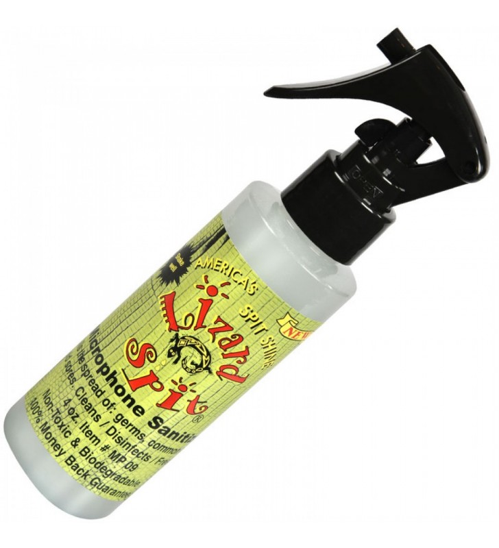 Lizard Spit Microphone Sanitizer doodt 99,9% van de schadelijke bacteriën en ziektekiemen.