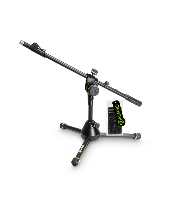 Korte heavy-duty microfoonstandaard met opklapbare statiefvoet, laag model