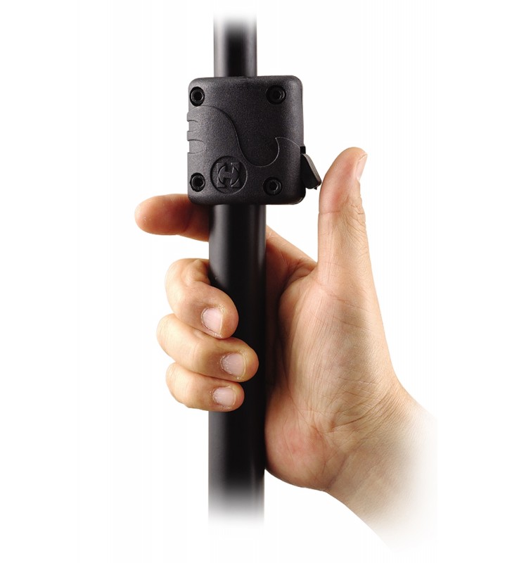 Driedelige schacht, niet-beschadigend hoogteverstellingssysteem, lichtgewicht kunststof voet met inklapbare poten.
