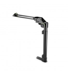 Microfoon microfoonstandaard met laag profiel en telescopische arm, ontworpen voor basdrums en akoestische instrumenten. Zware gietijzeren ronde basis, met anti-vibratierubber voor geluidsfiltering.