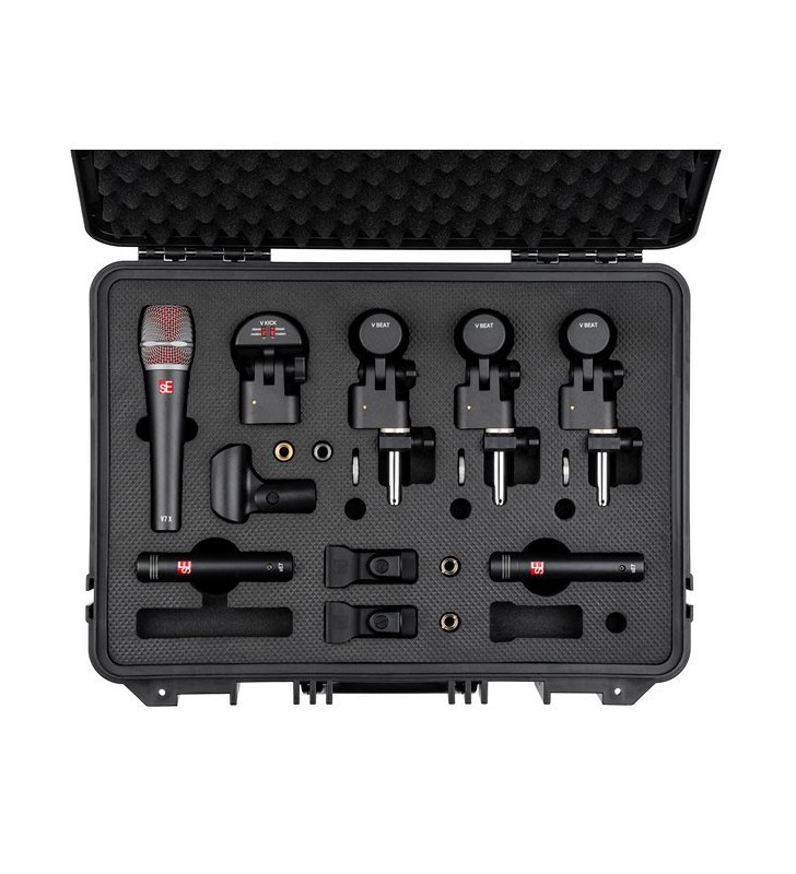 De sE Electronics V PACK CLUB bestaat uit één V KICK voor je basdrum, drie V BEAT's en V CLAMPS voor je toms, één V7 X voor je snare en een paar sE7-condensator microfoons als overhead microfoons.