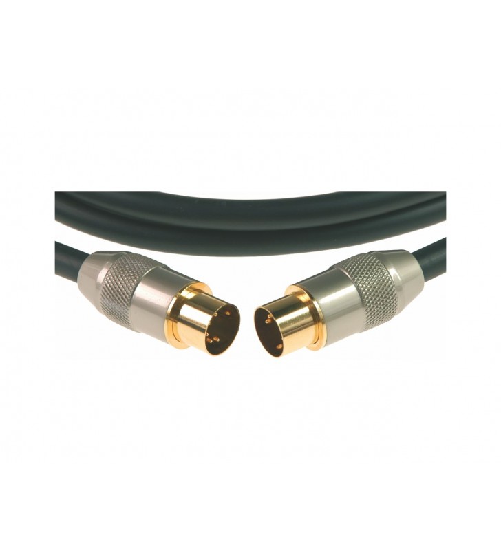MIDI Kabel, 3.0 Meter, 5 Polig DIN Haaks x 2, zwart