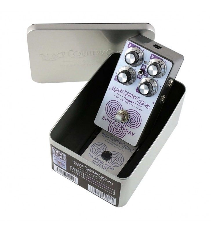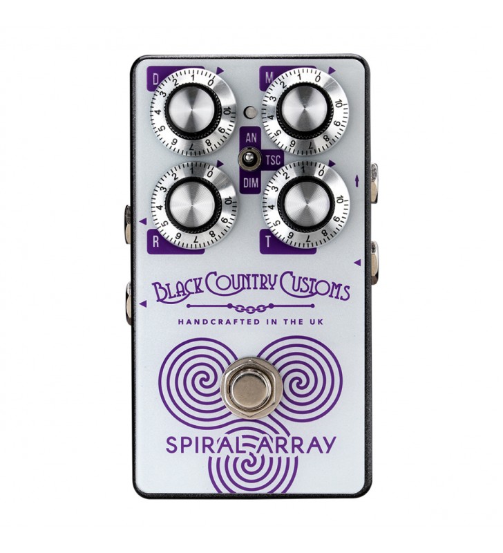 De Spiral Array Chorus bevat drie mooi vormgegeven, verschillende chorus pedalen in één doosje. De chorus geluiden zijn allemaal geïnspireerd door klassieke sounds uit de jaren '70 en '80. De analoge chorus is gebasseerd op de dikke Boss CE1 uit 1976, de TSC op de Dytronics Tri Stereo Chorus uit 1985 en de DIM op de Roland Dimension D uit 1979.