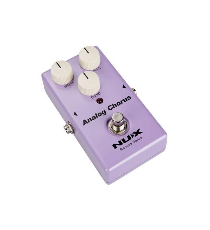 De NUX ACP10 Analog Chorus biedt de warme, rijke klank van klassieke analoge choruspedalen uit de jaren ’80. Het zuivere bucket-brigade-circuit geeft je een natuurlijke modulatie, van subtiele shimmer tot diepe, vloeiende bewegingen. Met de Width, Speed en Blend regelaars pas je het effect eenvoudig aan, terwijl de true-bypass schakeling zorgt dat je signaal helder en onvervormd blijft wanneer het effect uit staat. Compact, robuust en veelzijdig, dit pedaal is ideaal voor gitaristen die hun sound een warme, dynamische dimensie willen geven.