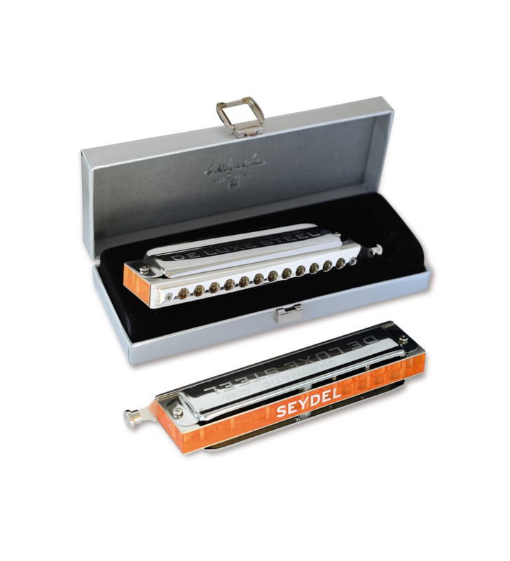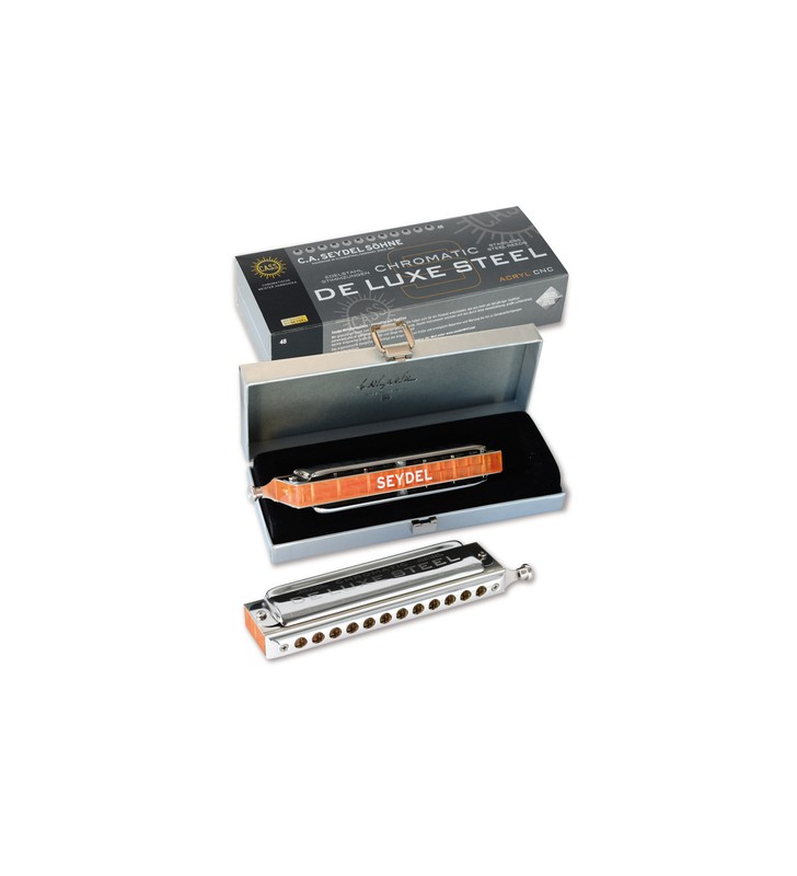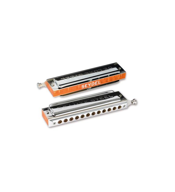 De Chromatic DE LUXE STEEL is het 'kleine zusje' van ons topmodel, de SAXONY Chromatic, en is uitgerust met SEYDEL's unieke RVS tongen. Het halvemaanvormige verzilverde mondstuk is helemaal opnieuw ontworpen en biedt uitstekende glij-eigenschappen.