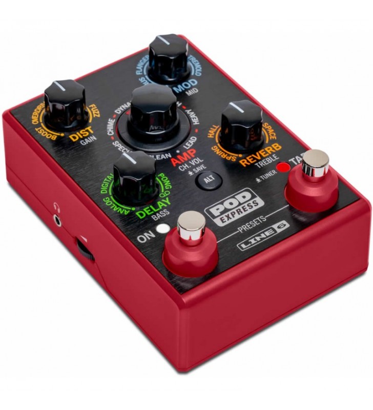 De ultra-compacte Pod Express voor Gitaar is een amp en effecten processor die het mogelijk maakt om je tone overal naartoe mee te nemen. De simpele bediening maakt hem makkelijk in gebruik. Alle geluiden komen uit de HX (Helix) familie van effecten en bieden dus professionele geluidskwaliteit. Je kunt het apparaat voeden met 3 AA batterijen of een 9 Volt voeding.