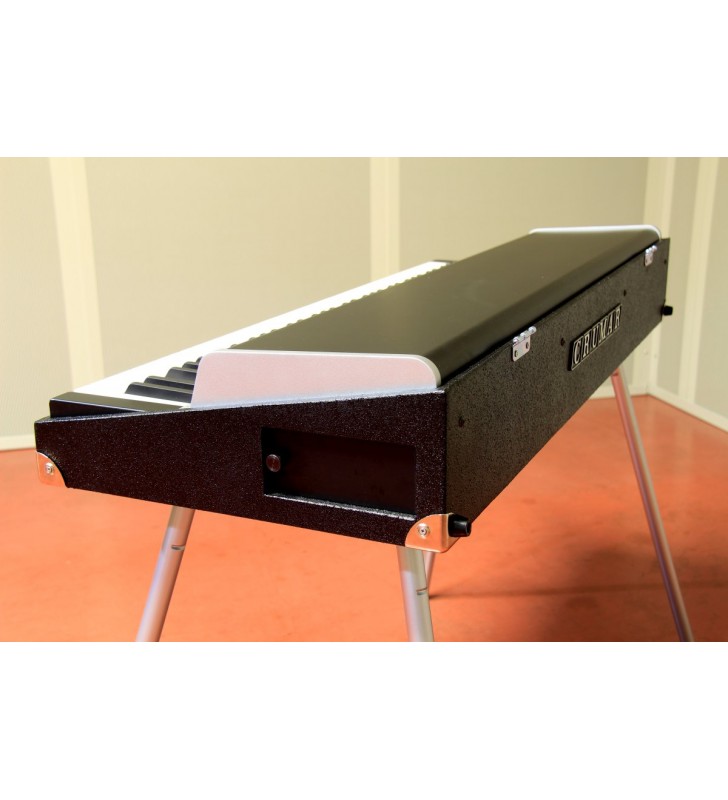 Hij is gebouwd in zijn eigen houten flightcase, met een knipoog naar de befaamde electrische piano’s uit de vroege jaren zeventig.