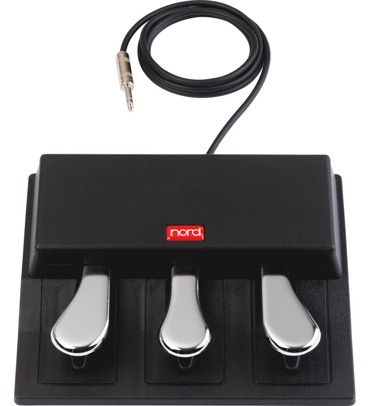 Nord Triple Pedal met dynamisch sustainpedaal voor halfpedalen en onze Pedal Noise-functie (voor compatibele instrumenten), een sostenuto- en softpedaal. Meegeleverd met Piano 5/Grand.