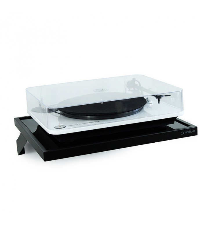 De plank, verkrijgbaar in licht eiken, walnoot of gehard glas, wordt ondersteund door vier Damp 50 resonantiedempers om de overdracht van ongewenste resonantie naar de platenspeler te voorkomen.