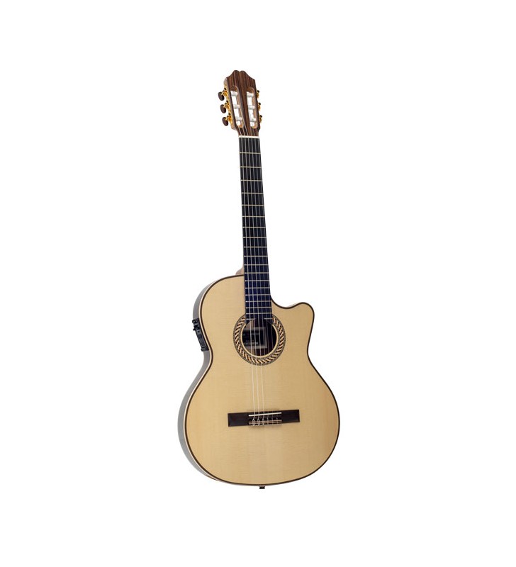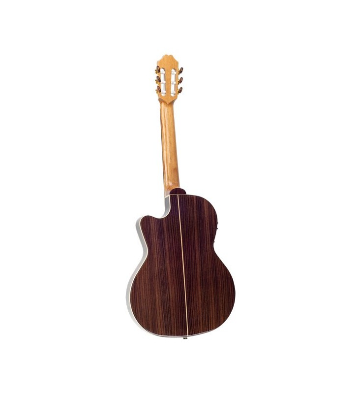- Massief Spruce bovenblad - Massief Rosewood achterblad - Gelamineerde Rosewood zijkanten - Ebony fingerboard - Fishman Prefix Pro Blend pick-up system - Witte houten binding - Polyurethane lak - Fingerboard Flat classical