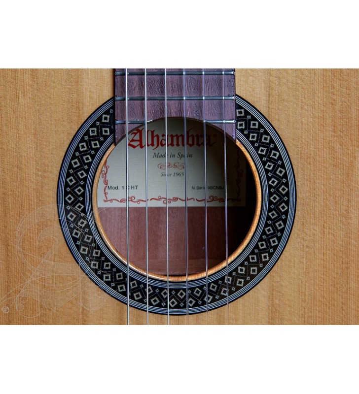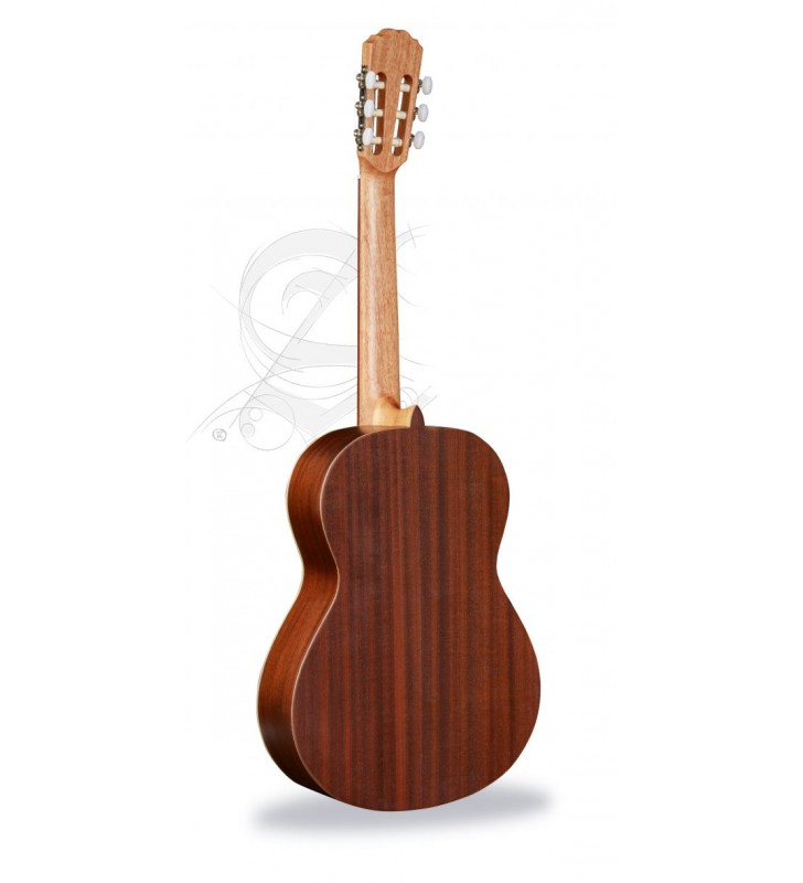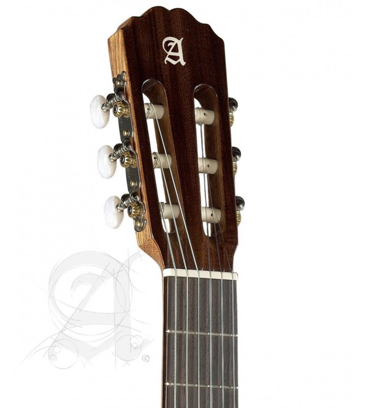 Zoals alle Alhambra-modellen, is het handgemaakt en gemaakt van geselecteerde houtsoorten. Massief cederhout is gebruikt voor het bovenblad en Sapelli voor de zijkanten en achterkant.