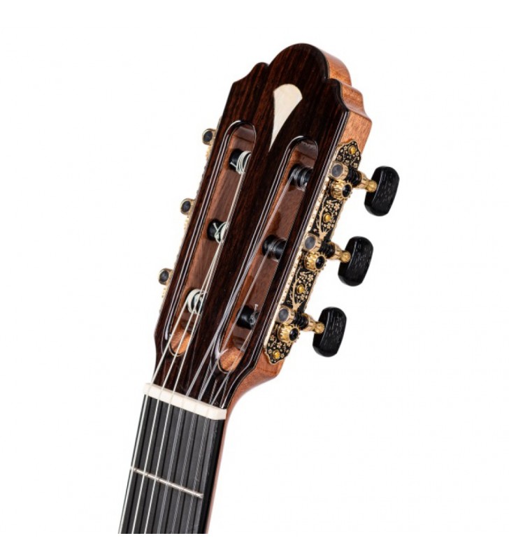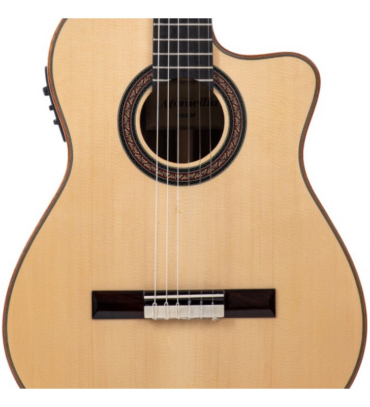 De M50 is uitgerust met de veelzijdige Fishman Presys Blend-voorversterker, helemaal plug & play klaar. De Presys Blend biedt een ingebouwde tuner en microfoon, een piëzo-pickup onder het brugzadel en een driebands equalizer. Hierdoor komt de karakteristieke klank van palissander-, ceder- en/of spar in alle warmte en helderheid versterkt tot bloei. Een lichtgewicht tweeweg trussrod is ingebouwd om de bespeelbaarheid betrouwbaar en eenvoudig aan te passen aan de speelstijl van elke gitarist. De M50 is de ideale aanvulling op je gitaarcollectie wanneer je opnames wilt maken als sessiegitarist of wanneer je een nylonsnaar wilt toevoegen aan een live band. De Maravilla M50 wordt standaard geleverd met luxe gigbag.