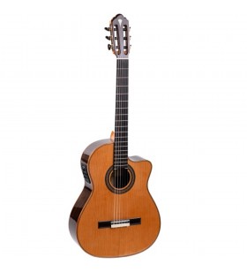 Het formaat van een klassieke gitaar kan voor tieners, jongvolwassenen, maar ook sommige volwassenen simpelweg een maatje te groot zijn. Daarom biedt Juan Salvador met de 2C Señorita een 7/8 model waarmee iedereen met een (nog) wat kleinere lichaamsbouw ook de gelegenheid krijgt om met een volwassen klassieke gitaar te spelen en op les te gaan. De 2C Señorita biedt alle aspecten van de 4/4 variant, dus het massief Amerikaans cederen bovenblad, de zij- en achterkant van mahonie (sapeli), de heerlijke mahonie hals met palissander toets, de zuivere Van Gent stemmechanieken, de fraaie glanzende afwerking en de klassieke warme, gedefinieerde toon waar volwaardige klassieke gitaren over beschikken. Dit is het perfecte instrument voor diegenen die het gitaar spelen leuk vinden, het serieus nemen en les nemen en bij wie de 7/8 afmeting beter past.