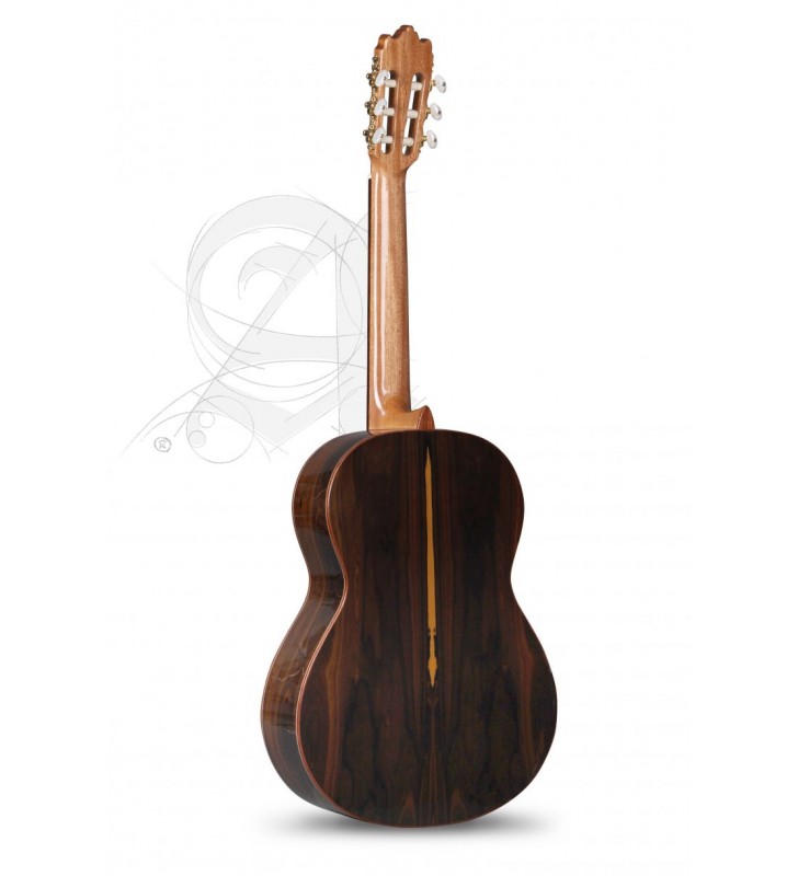 de zij- en achterkant van deze gitaar van Ziricote, een uitzonderlijk mooi hout, creëren een diep en kenmerkend Spaans geluid. Het unieke karakter van elk instrument wordt vergroot door de visuele contrasten die de nerven van dit hout op de zijkanten en achterkant tekenen. Je gezichtsvermogen zal genieten van het unieke karakter van elke gitaar.