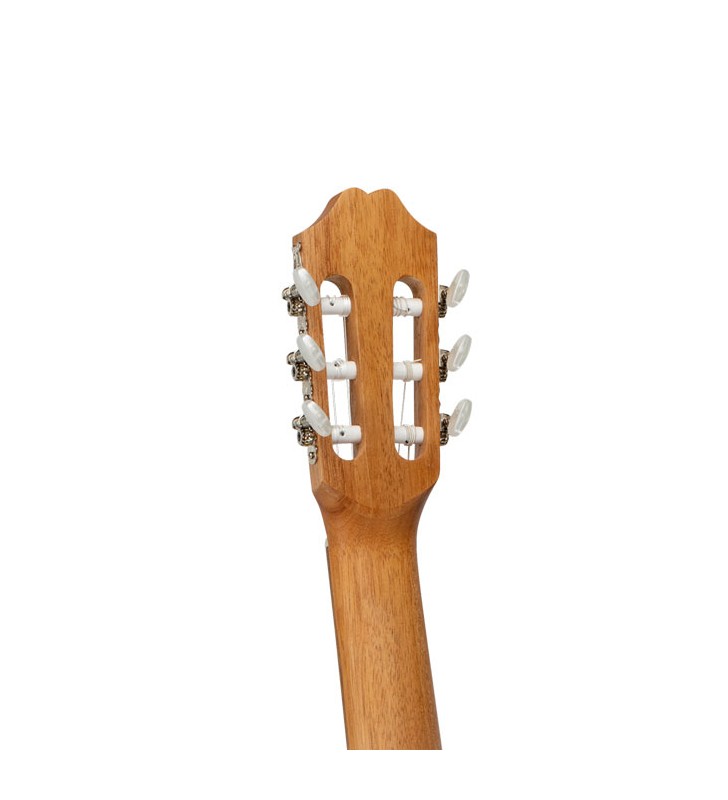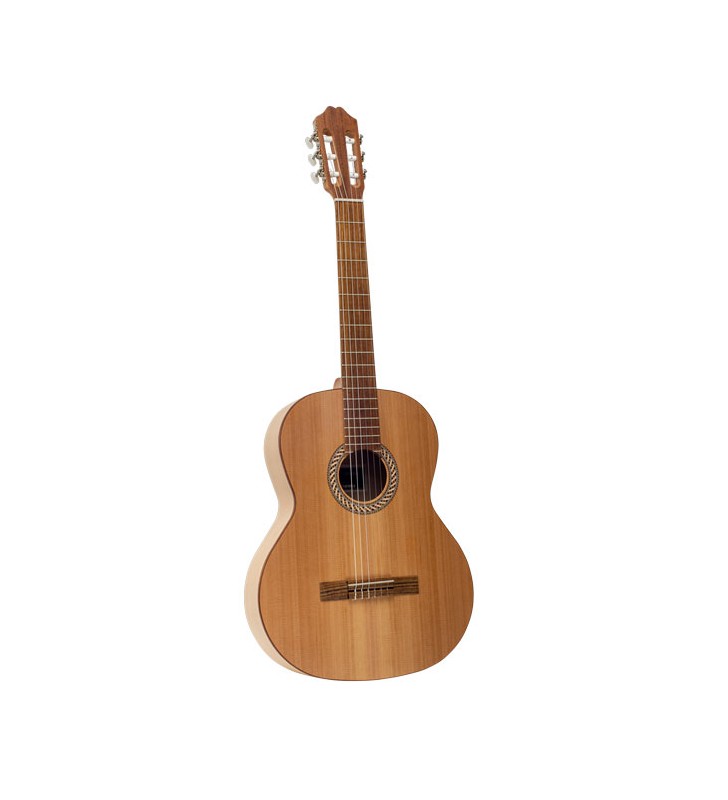 De unieke Juan Salvador 1C wordt speciaal voor kinderen als ‘Cadete’ in 3/4 formaat gemaakt. Het is precies dezelfde gitaar, maar met een snaarlengte van 58 cm en een kleiner postuur. Dus is de 1C Cadete ook uitgerust met het massieve bovenblad van het Amerikaans rode ceder, de Van Gent mechanieken die feilloos stemmen, de beuken zij- en achterkanten, de mahonie hals en de ‘Open pore’ lak die de klank echt naar buiten doet komen. Met het warme, sprankelende geluid en het speelcomfort zou deze gitaar menig zoon of dochters beste vriend kunnen worden. Het zal hen zeker enthousiast maken voor gitaar spelen.