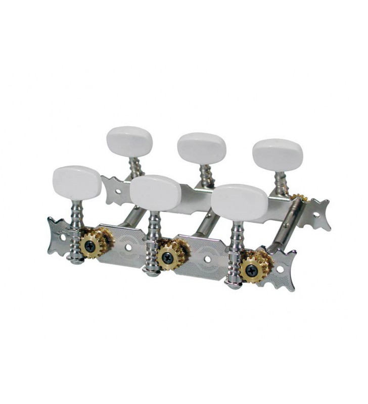 Stemmechanieken voor klassieke gitaar, nylon as, 3x links+3x rechts, 70mm, parelmoer knoppen