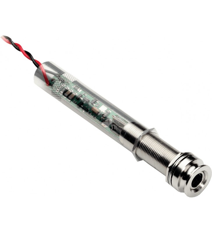 Een miniatuur ingebouwde voorversterker ingebouwd in een langwerpige endpin-aansluiting. De Powerjack geeft actieve prestaties aan uw passieve piëzo-pick-up - 12.000+ uur batterijduur van een enkele 9-volt batterij!