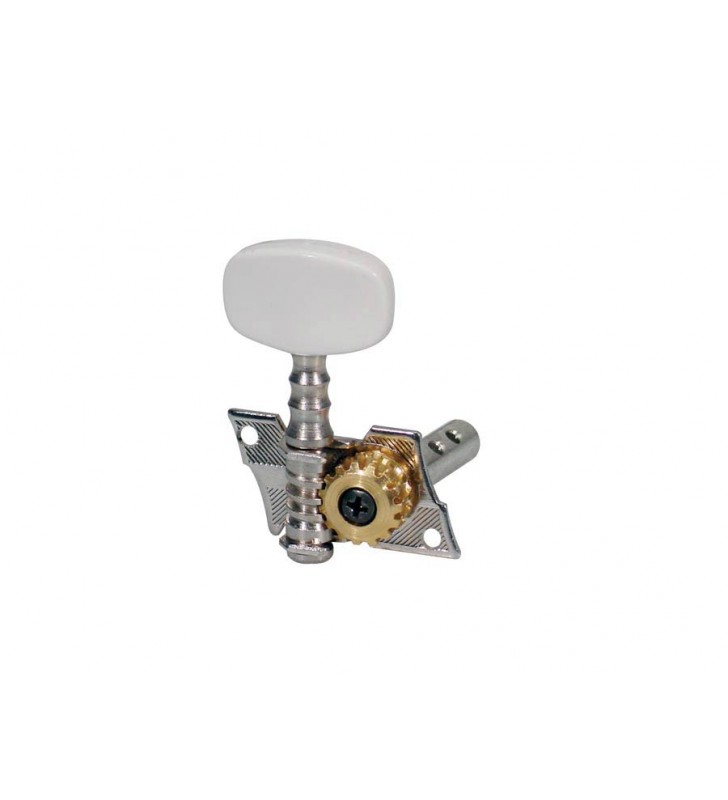 Stemmechanieken voor ukelele, vernikkeld, witte knoppen, set van 4