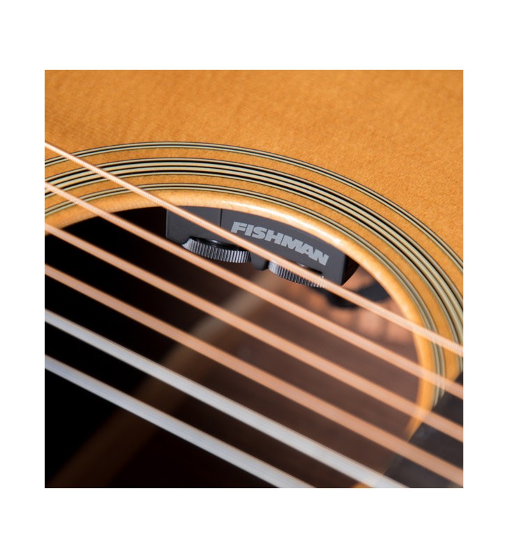 Een opnieuw ontworpen, afgedichte behuizing voor de in het klankgat gemonteerde volume- en toonregelmodule stelt spelers in staat om moeiteloos hun geluid aan te passen. De stemschakelaar van de voorversterker is verplaatst en gemakkelijk toegankelijk gemaakt, zodat spelers verschillende soorten gitaren, versterkingskeuzes, speelstijlen en uitvoeringssituaties kunnen accommoderen.