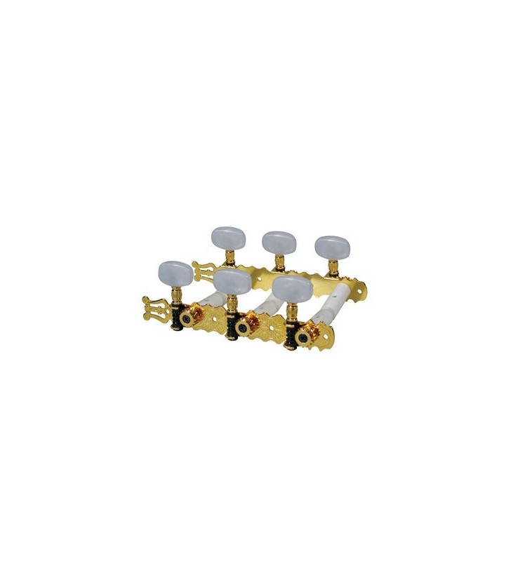 Stemmechanieken voor klassieke gitaar, nylon as, 3x links+3x rechts, 70mm, goud, parelmoer knoppen