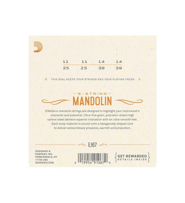 D'Addario EJ67 set mandoline NICKEL 11/11-14/14-25/25-39/39